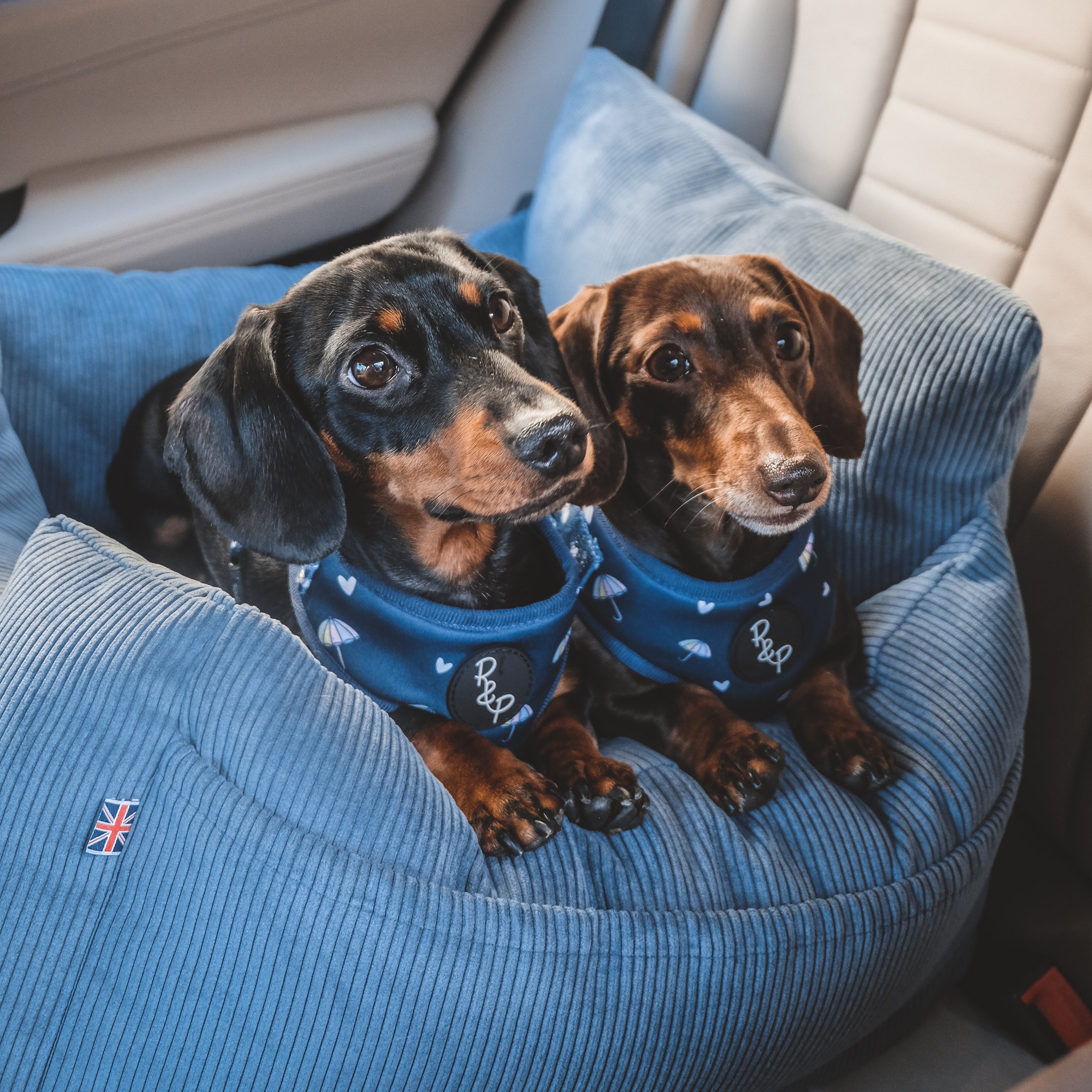 It is possible to have two dogs in one car seat, although this will obviously depend on the size of the dogs and if they like snuggling! If you are using your car seat for two dogs, don't forget to buy a second shock absorbing safety leash.